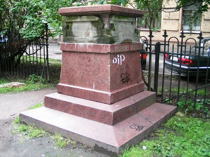 Далее грянула революция, гражданская война и разруха. Бронзовое изваяние показалось кому-то недостаточно пролетарским, поэтому было снесено и пропало в неизвестном направлении. Сохранился только постамент, который каким-то образом оказался во дворе военно-исторического музея А.В.Суворова.