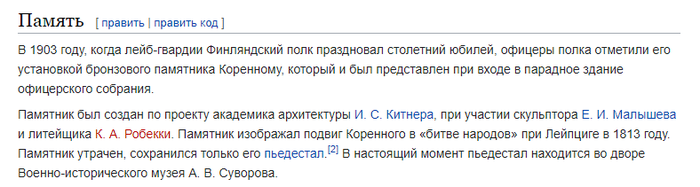 Так эта часть памяти и оставалась бы на задворках, пока не растворилась в пучине времён окончательно. Но постамент попался на глаза современным офицерам, близким по духу с теми, кто изначально устанавливал статую. В результате чего история получила продолжение, а вы сейчас читаете эту статью. В Википедии написано, что памятник утерян и его остатки находятся в музее Суворова. На сегодняшний день это уже устаревшая информация.