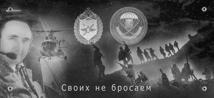 Далее — «Своих не бросаем», здесь Герой России, пилот Валерий Чухванцев под обстрелом и на поврежденном вертолете вытаскивает с поля боя группу раненых разведчиков.