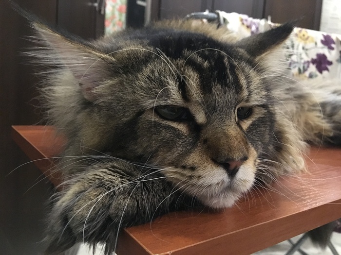 Собственно, вот наш любимец, Мейкун Берлюша, а если вредничает или свинячит, то сволота шерстяная. Милое и дружелюбное существо, особенно когда вы едите докторскую колбасу при нём. Нам говорили, что мейнкуны не мурчат, наш мурчит, но по настроению и звук больше напоминает трактор.