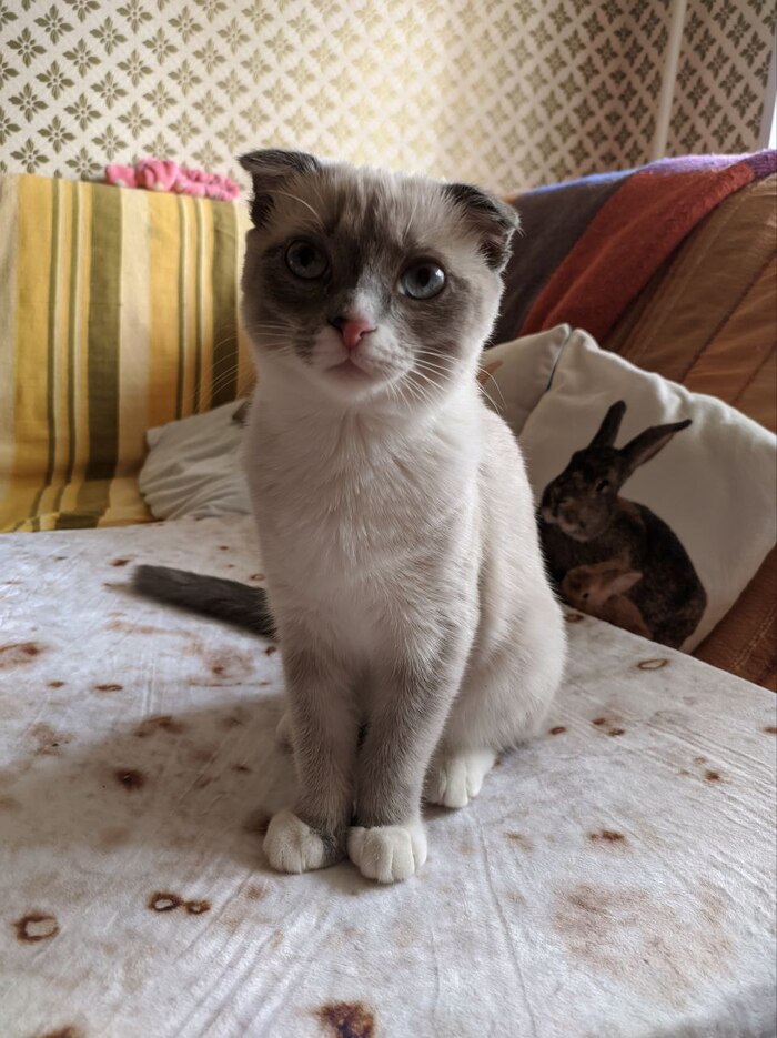 Самая активная, любопытная наглая морда. Не кусучая, добрая, почесушная, шиложопик тот еще. Энерджайзер херов