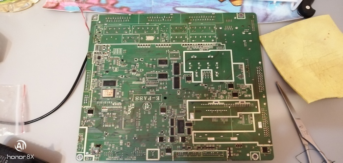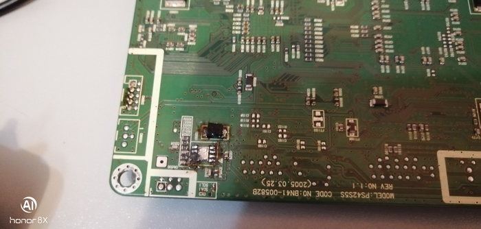 Добрый утро/день/вечер. Нужна ваша помощь уважаемые =) Был у моего друга данный аппарат, то-ли от старости то-ли хрен знает от чего на экране начали появляться полосы то вертикальные то горизонтальные, стоило сзади стукнуть по крышке вроде как пропадали. У меня была похожая ерунда с видеокартой на старом пк, мне помог прожиг в духовке, тоже самое я предложил ему. Вообщем прожег он ее и вроде как телек начал исправно работать, через 2 месяца опять появились полосы, прожарил еще раз хватило на неделю, еще раз и снова на неделю, короче психанул он и запиндрячил ее на максимум в духовку) Как следствие отвалились пару деталек. Ну что ж.... паяльник в руки и имеем 2 оторванных дорожки и ножку у микросхемы. Телек подарен мне, сам я могу спаять разве что что то совсем примитивное, поэтому прошу помощи вас уважаемые специалисты)) Сколько будет стоить ремонт данной техники? а да совсем забыл разъемы кроме hdmi и антенного кабеля мне не нужны. Главное восстановить работоспособность =) Заранее благодарен)