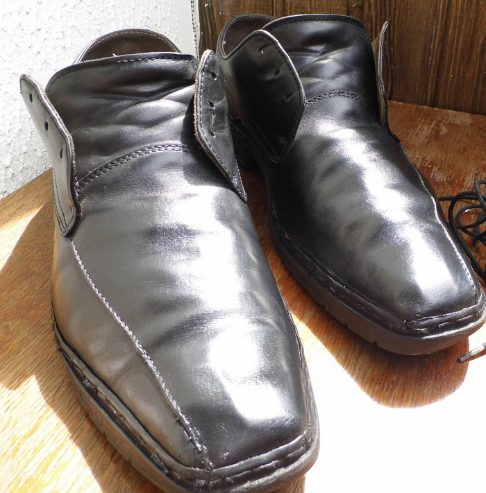 Достанем напиханную газету, которая всё это время в обуви находилась. Интересно, а сейчас складки вернутся?