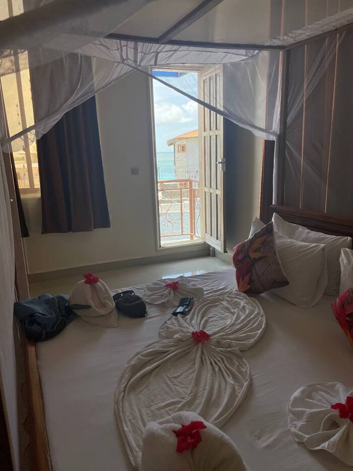 По итогу при заселении отдал 400$. Какие-то скрытые Танзанийско-Занзибарские налоговые начисления, хотя Букинг заявлял что цена окончательная. Уже собирался открывать свой матершино-суахильский разговорник, но увидев номер в который меня заселили я размяк.