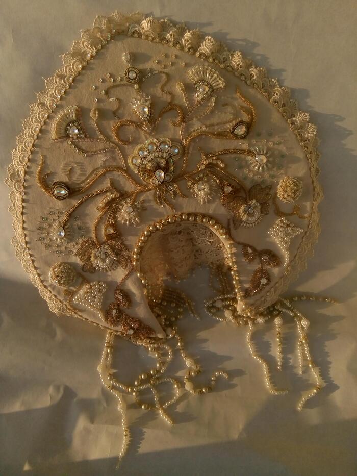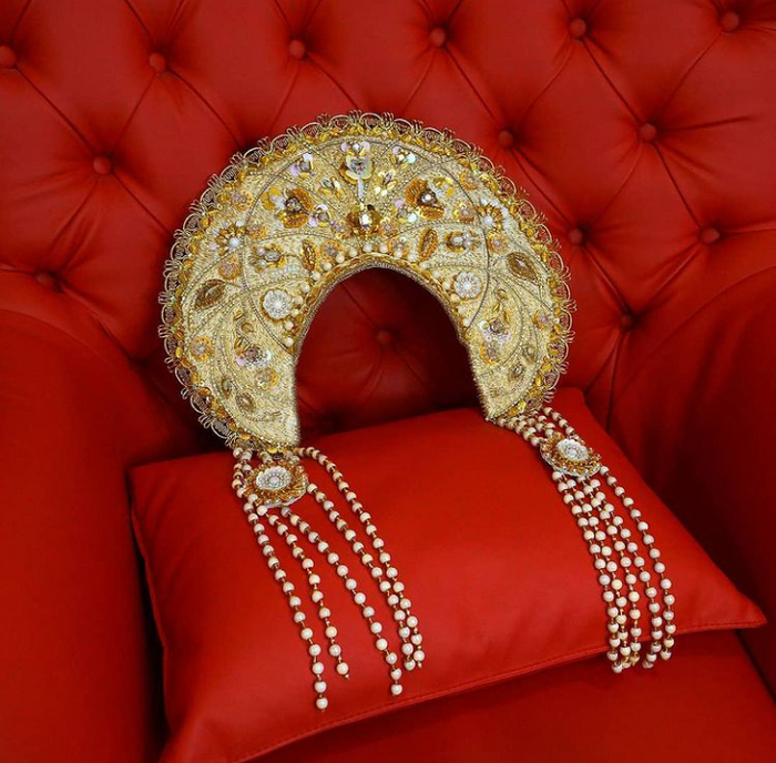 Первый свой кокошник я вышила примерно 5 лет назад, при чем увлеклась ими совершенно неожиданно для себя. Никогда не занималась народным творчеством и чем-нибудь около того. Я начинала с изготовления брошек. Потом в интернете увидела мастеров, которые занимаются именно кокошниками, но не копируют старинные головные уборы, а делают их в современном прочтении, мне сразу захотелось попробовать так же.