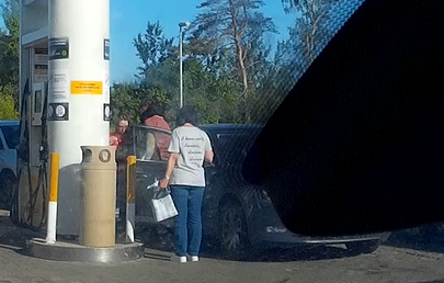 После того как я заправился, переставил автомобиль на парковку напротив заправочной зоны, чтобы отдохнуть и перекусить. Спустя еще несколько минут к автомобилю наконец-то подошли люди - те самые гражданки из кафе. К слову, за ними опять образовалась новая очередь ожидающих.