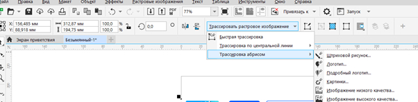 Нажимаем “Трассировать растровое изображение”-”Трассировка абрисом”-”Изображение высокого качества”