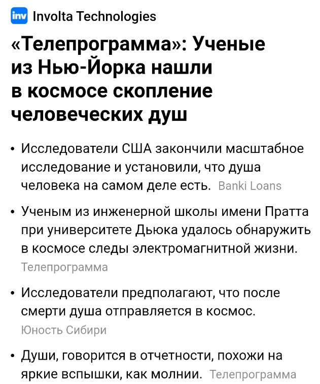 Вывод из всего этого: ПИЗДЕЦ. В 2023 году новостные службы на голубом глазу вываливают в инфополе новость об обнаружении УЧЕНЫМИ человеческих ДУШ.