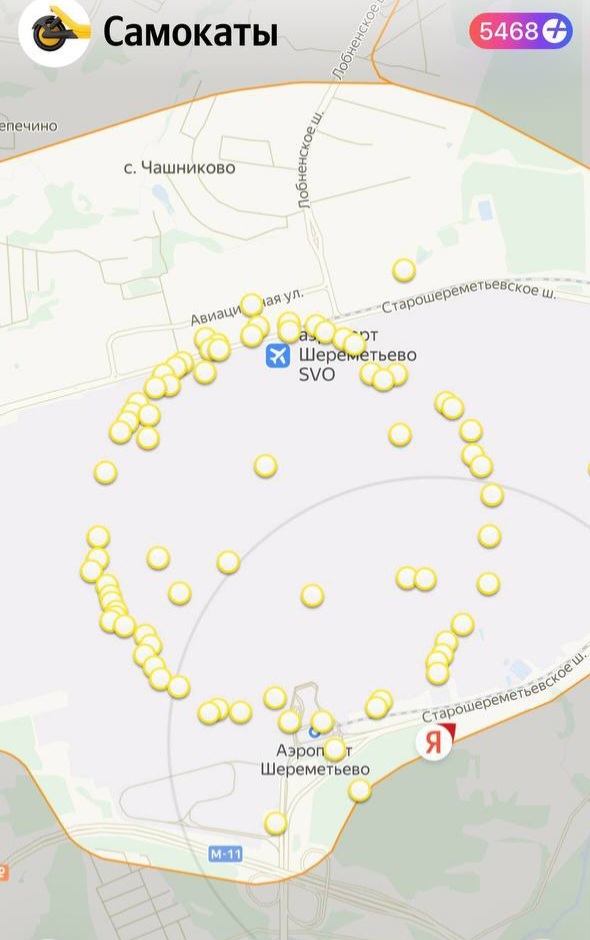 Судя по картам, в Шереметьево новая услуга. Если вы не успели к выходу, и автобус уехал – берите самокат/велосипед и катитесь до самолёта сами. Или это персонал гоняет?