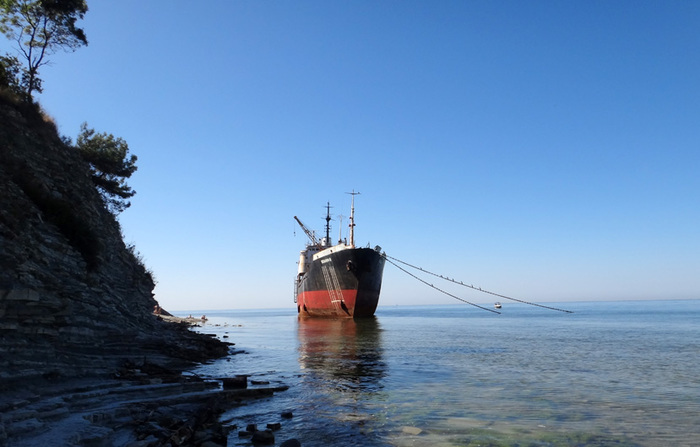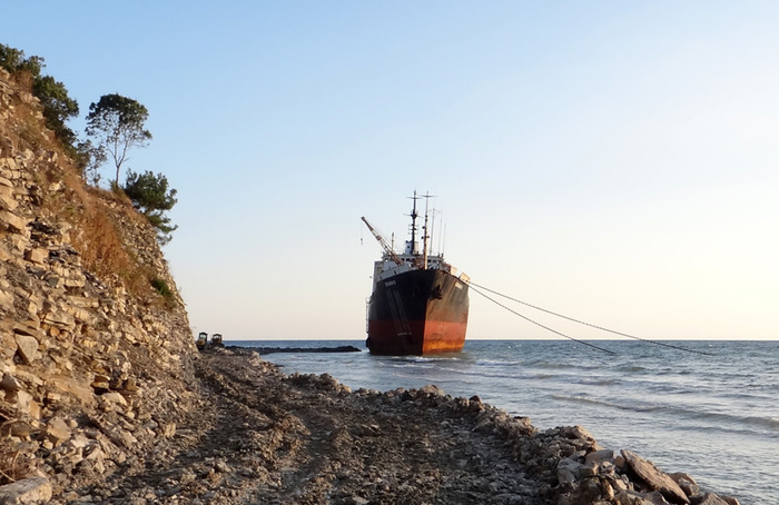 Источник http://www.odin.tc/disaster/disaster3.aspЭта история об удачном, после нескольких неудавшихся попыток, "абордаже" огромного по сухопутным меркам судна в марте 2006 года севшего на мель в Голубой бухте, что недалеко от Геленджика.