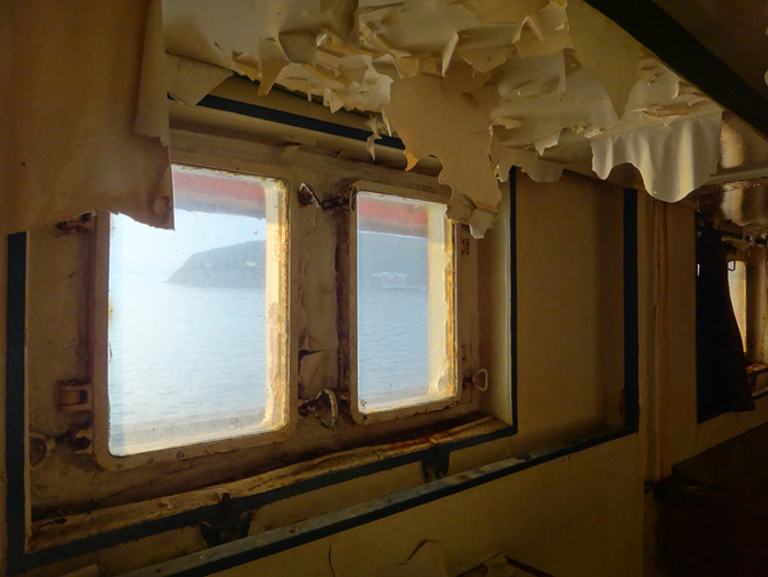 Вообще самым подходящим вариантом было забраться по трапу, который висел по правому борту корабля, но от него до воды было метра три, причем глубина в том месте - около полутора метров. Нужна была веревка, а время поджимало - и ни с чем я отправился прочь, сделав пару кадров.