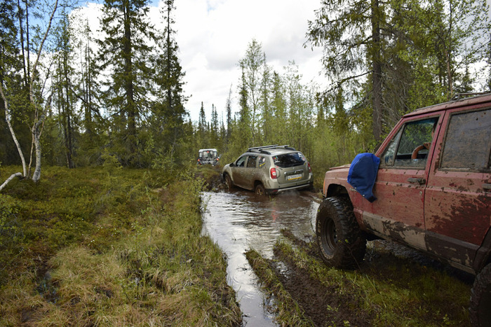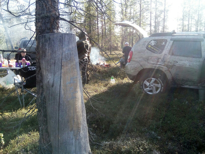 Машин собралось много. Я на Дастере, Гриша с Таней и Глебом на УАЗе, Леха на Дэфендере, Саня с другом на Паджеро, Андрюха на Джипе Черокезе, и Миша со всей семьей на Шниве. У всех, кроме меня была МТ резина, у меня же пока АТ. Ну и всех нас объединяло огромное желание кататься…
