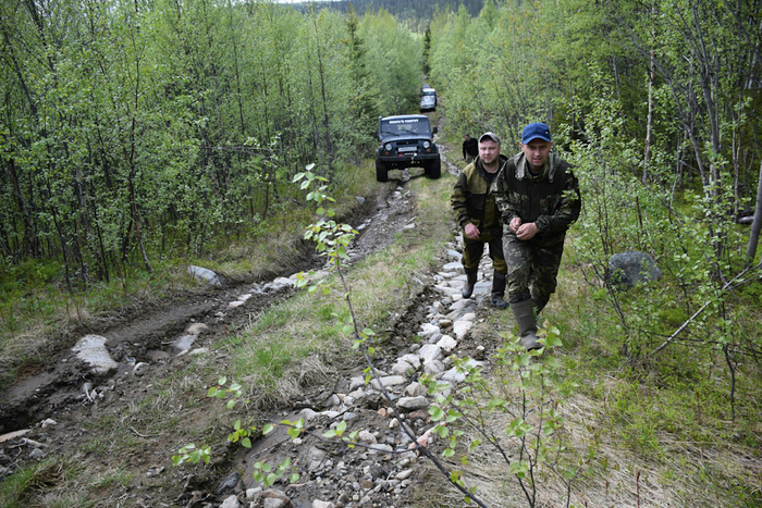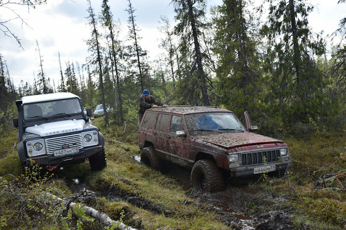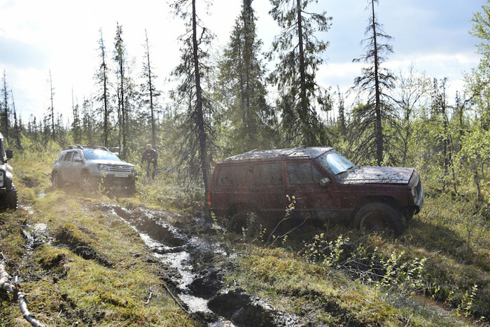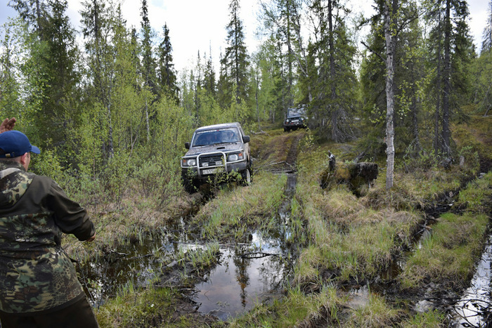 И это было только начало. Отъехав метров 100 от лагеря, в рацию я услышал, что все сидят, далее сел Андрюха, а за ним и я. Теперь точно все, все 6 машит плотно сидят в болоте с промежутком в 20 метров. Круто!