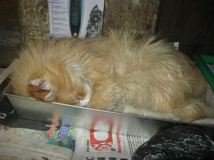 В ночь со вторника на среду, нам через забор кинули котенка, возраст дней 6, отбит живот, разбит нос в кровь, сам естественно не ест. Пока сунули его Тотосе, она его приняла, но молока у нее нет и не будет. Кормим из шприца, шансов мало, очень слабенький, плюс переохлаждение, плюс отбитый живот. Какая тварь кинула котенка через забор мы не узнали, самое забавное, что собаки проспали этот момент! Фото пока не делали!