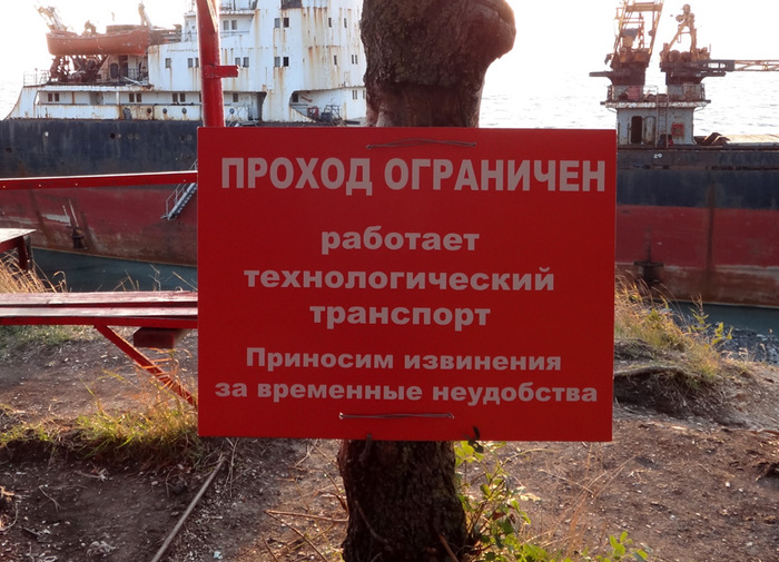 Каково же было мое удивление, когда я увидел насыпанную к кораблю дорогу для техники и табличку