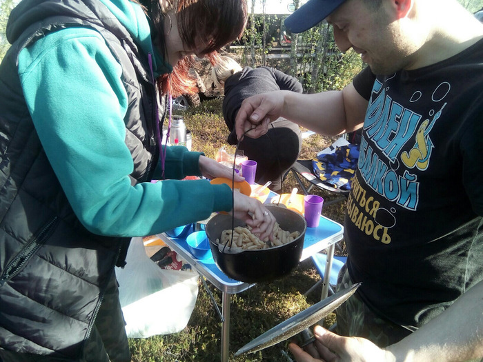 Приехал на место ориентировочного лагеря, мы принялись готовить обед, хотя по времени это больше походило на ужин. Жарили шашлык, пили чай. Ну и как нам уже очень давно хотелось, сварили макароны по-флотски. За это чудное блюдо нужно сказать отдельное спасибо Грише, он у нас теперь стал нештатным полевым поваром!