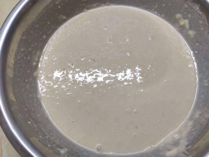 В итоге у нас получится такая консистенция теста, похожая на сметану.