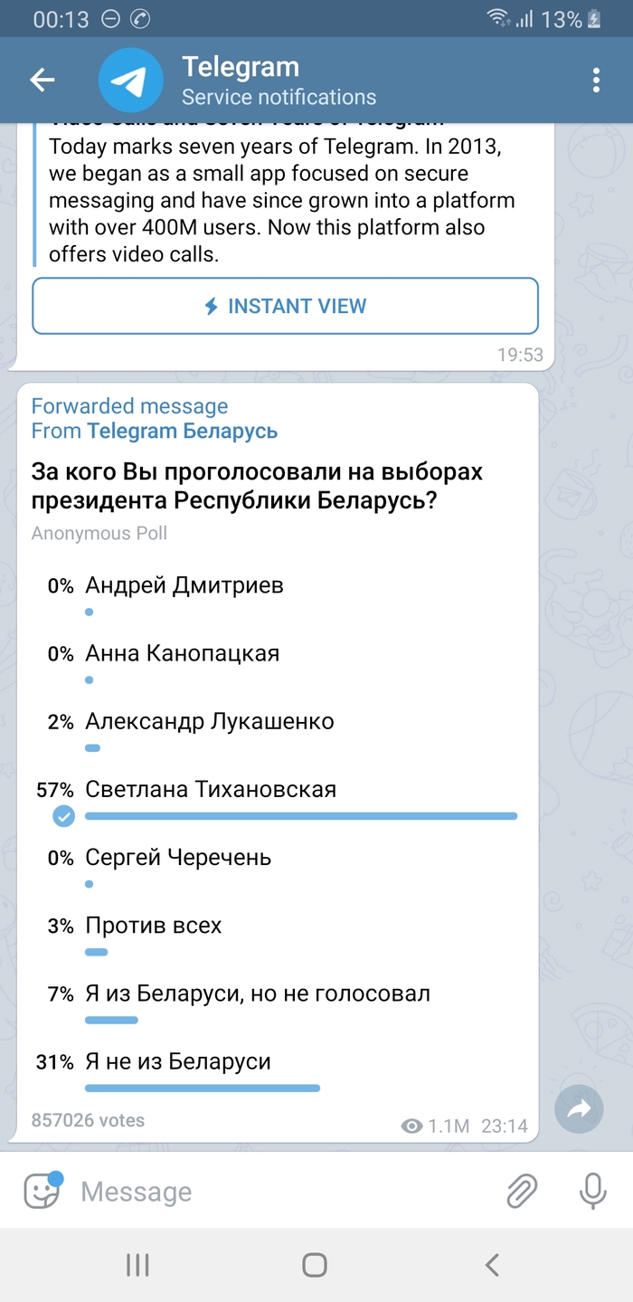 Пару часов, как телеграм запустил опросник среди людей с беларуской сим картой.