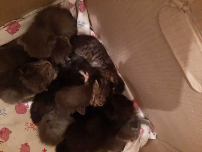 Пикабутяне! Просьба помочь в пристройстве котят. По предварительным данным два мальчика и остальные девочки. Катались в пром зоне Одинцово и вышли покурить. Наткнулись на них! Помогите! Их 11!живем в съёмной. Оставить не можем. У нас кот.