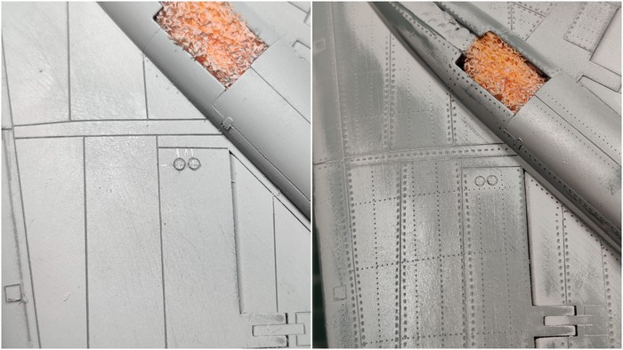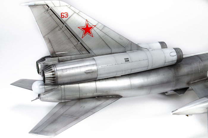 Эта модель (Ту-22 "Шило" от фирмы Trumpeter) была примечательная тем, что у неё не было расшивки. Совсем. На фото ниже прекрасно видно, как выглядела бы модель без данной доработки: