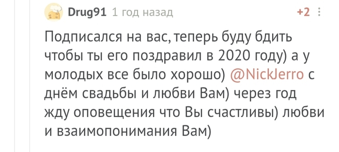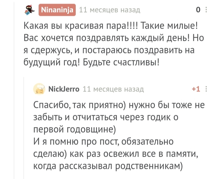 С именинниками разобрались, теперь переходим к годовщинам. Выполняю обещание, данное @NickJerro, и поздравляю его и его прекрасную жену с годовщиной свадьбы (фотографию без разрешения выставлять не буду):