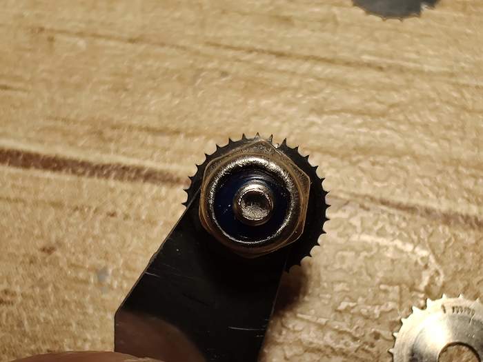 А проблема в том, что в роли стержня, на котором держится диск, используется небольшой винт. А у винта имеется резьба, которая медленно, но верно стирает металл и увеличивает диаметр отверстия: