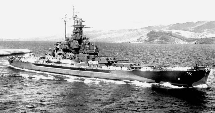 Американцы. Но не «Айова», как в оригинале, которые подошли с убитых японцев ботинки снимать, а «Саут Дакота» со товарищи.
