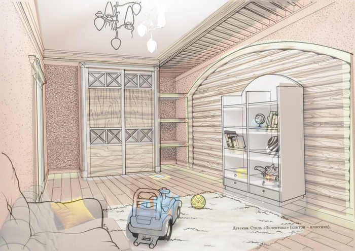 Угу, стиль "эклектика" (кантри - классика), как меня рассказал дядюшка гугль, это два разных стиля. Эклектика, это значит "Вы можете оставить свое мнение при себе, мне так нравится". А вот кантри - это классика американских фермеров, которые жили в деревянных домах, и имели мебель, надежные столы и стулья, без наворотов. Там не приветствуются пластмасса, и прочее фигня. Ну представьте, заходите в гости к такому фермеру, и что Вы там увидите? Барокко? Ну вот то то.
