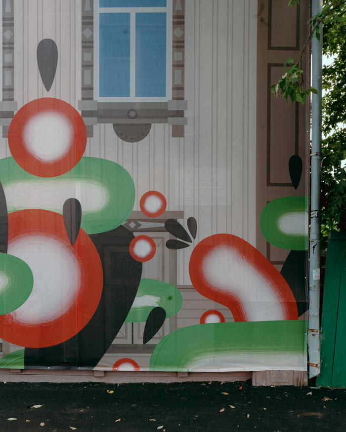 Сколько веков прошло, а история потемкинских деревень все живет на улицах городов России. Баннеры на реставрирующихся зданиях, соседствующие с нами годами, привлекли внимание уральского художника Красил Макара. В Тюмени он добавил одному такому авторский тег в народной технике урало-сибирской домовой росписи.