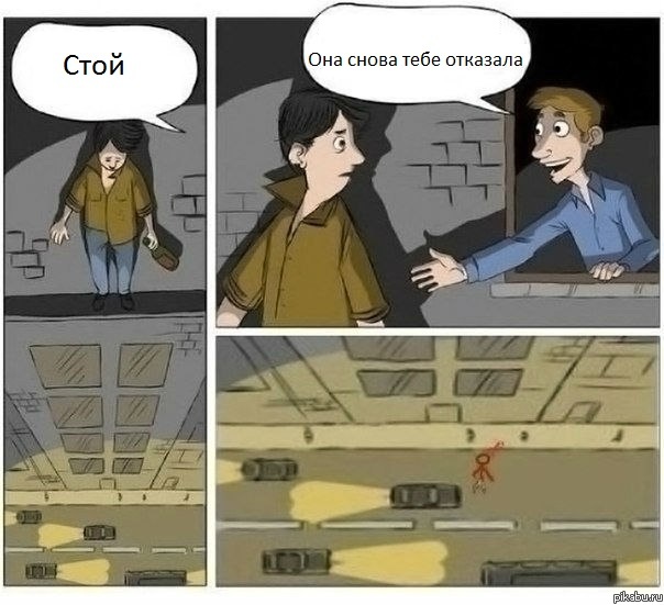 "Познакомился я как-то с девкой (20 лет). Девка страшная как смерть, вся в прыщах и зубы как у лошади. Совершенно случайно познакомился и сдуру ей улыбнулся. Вот теперь и раскаиваюсь за свою глупость! Как она вцепилась в меня, присосалась как пиявка и не отстаёт. Послать прямым текстом не получается, плачет, рыдает, на шею вешается, самоубийством угрожает. Решил под дурака закосить, чтоб сама бросила. Сначала "лёгкие странности" себе позволял, потом разошелся не на шутку. Ничего не помогает! Вот теперь думаю обоссаться прилюдно и в лужу сесть. Авось поможет?"