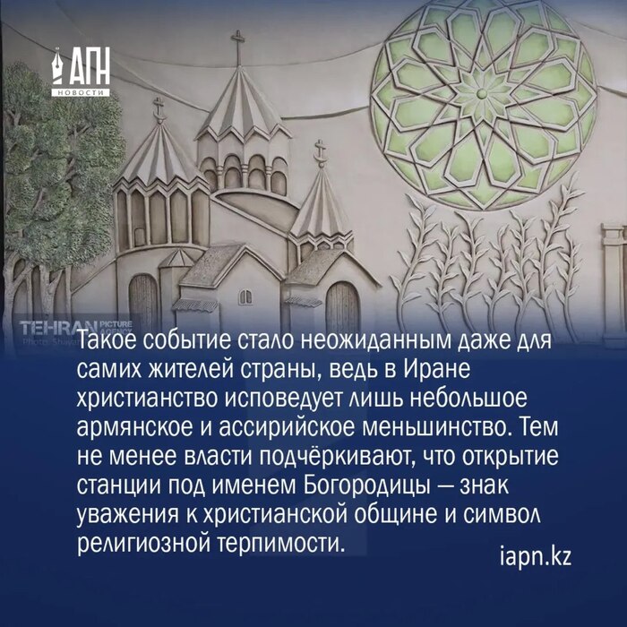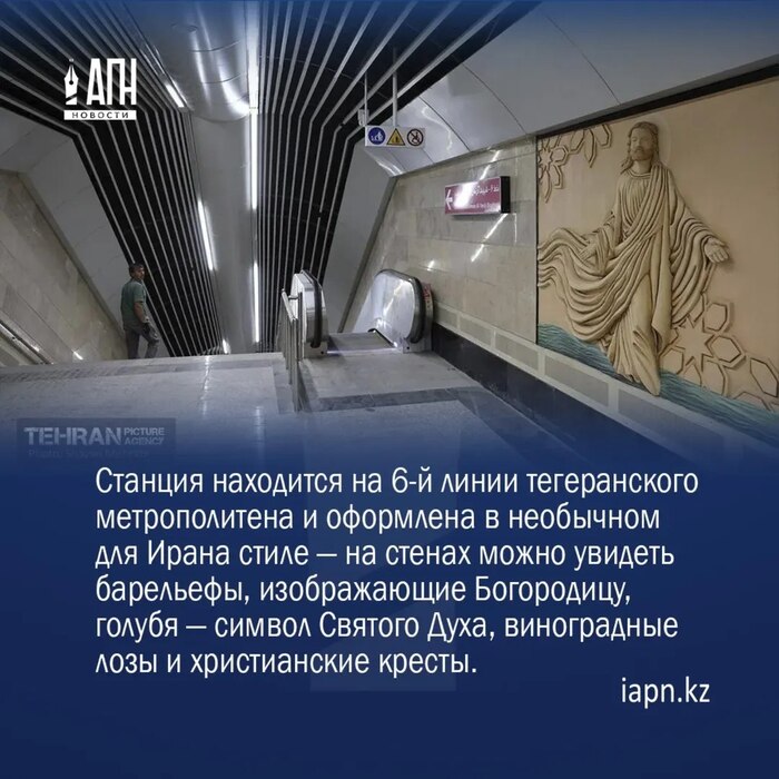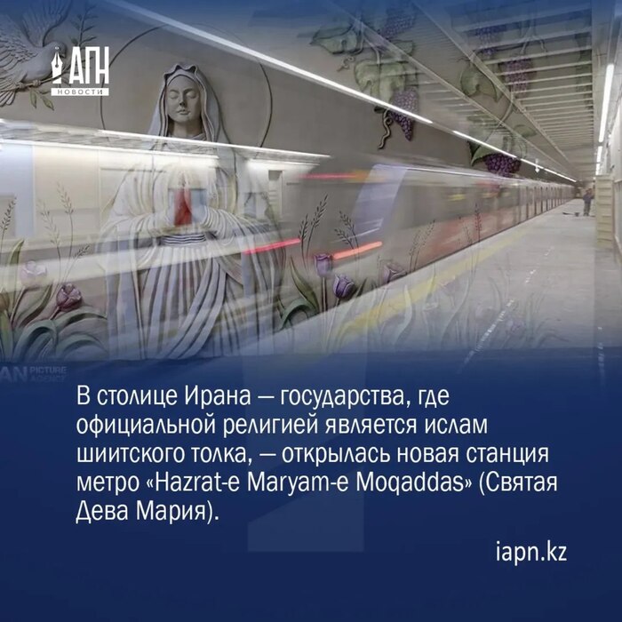 В столице Ирана — государства, где официальной религией является ислам шиитского толка, — открылась новая станция метро «Hazrat-e Maryam-e Moqaddas» (Святая Дева Мария).