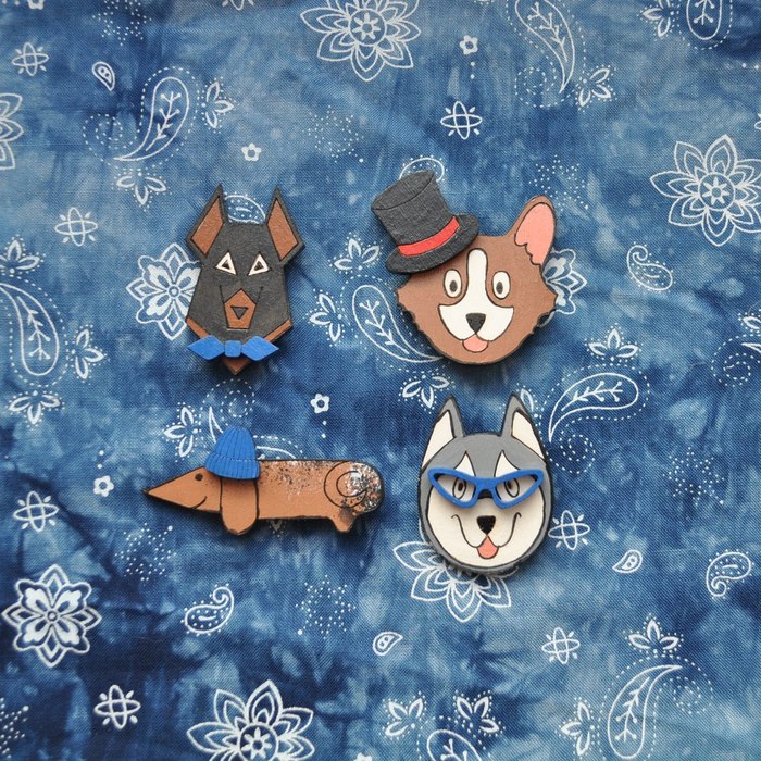 Новый .год все ближе и ближе. А люди все настойчивее стали спрашивать значки с собаками. Вот если честно, никогда особо не делали какие-то штуки с символикой года. А тут прям прониклись. Да и просто значков собак то у нас и не было, пусть будут. Сделали! Теперь есть в нашем арсенале значки таксы, доберманы, корги, хаски. Классные они :)