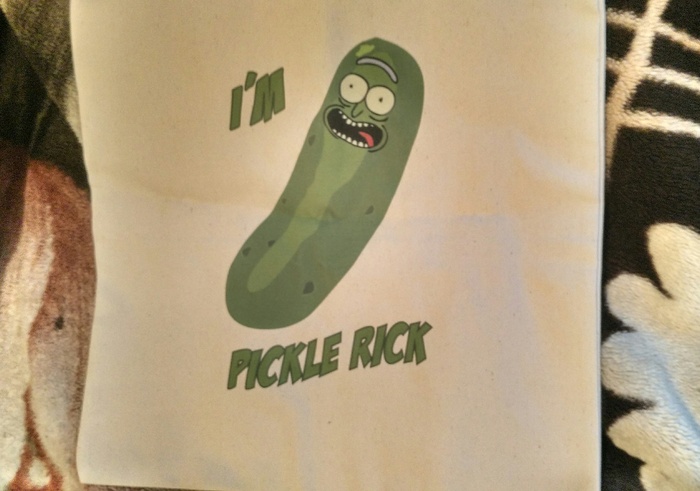 Ахринеть! Первое, за что зацепился взгляд - холщовый материал в пакете, который оказался сумкой. И не простой сумкой, а с Риком! Огурчиком Риком, попрошу. Одна из любимых серий, на минуточку.