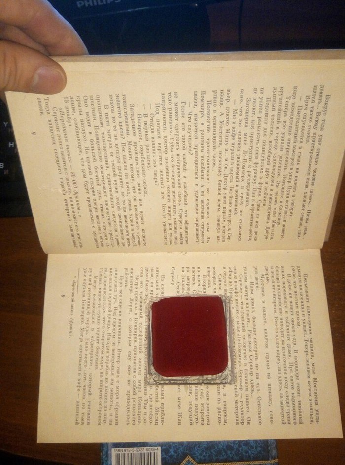 Осталось 15 дней до Нового Года, а значит приближается обмен подарками. Обычно мы обмениваемся символическими подарками, но в этом году жена задумала что-то посерьезнее. Ну что же, надо чтобы подарки были равноценными, сходил в ювелирный магазин и приобрел небольшое украшение. Возник вопрос как его преподнести и я выбрал практически классический вариант. Взял старую книгу.