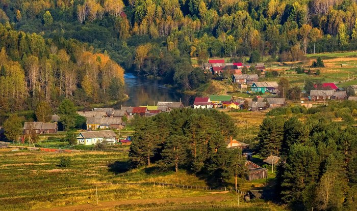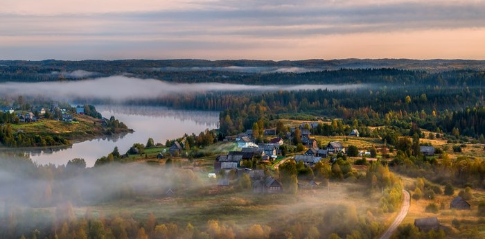 Дома в деревне Казыченская на берегу озера Ладвинское.