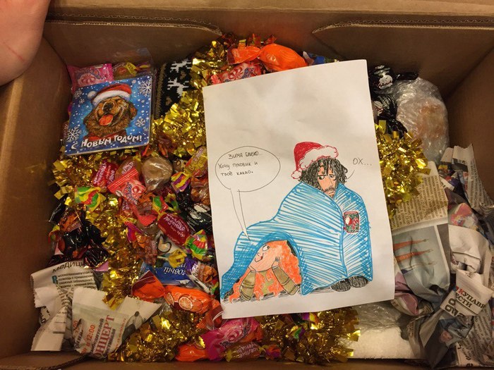 Так как мою Снегурочку еённый дед перекинул через писюн, я решила отправить подарок ей в ответку. Поэтому Саня, держись! Придет и тебе полным-полна коробушка!