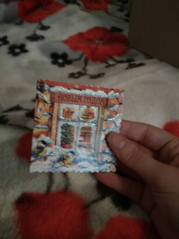 Ну и конечно новогодняя открытка с пожеланиями. Огромнейшее спасибо и организаторам, и Дедушке Морозу, и 2 почтам, что и мне удалось прикоснутся к этому чудесному обмену. Просто ураган эмоций)