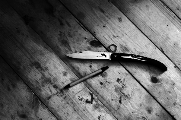 Угольным карандашом мне рисовать понравилось. Если делать грубые наброски, одно удовольствие. Жаль, что очень мало времени практиковаться. За всё это время я ни разу не брал карандаши в руки, только для рисования этих двух "портретов". Спасибо что дочитали/долистали. Вот вам напоследок пара фотографий моего ножа
