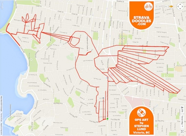 Канадский художник Стивен Лунд создает веселые рисунки на картах, просто используя свой велосипед и GPS в смартфоне. Об этом сообщает UFank.