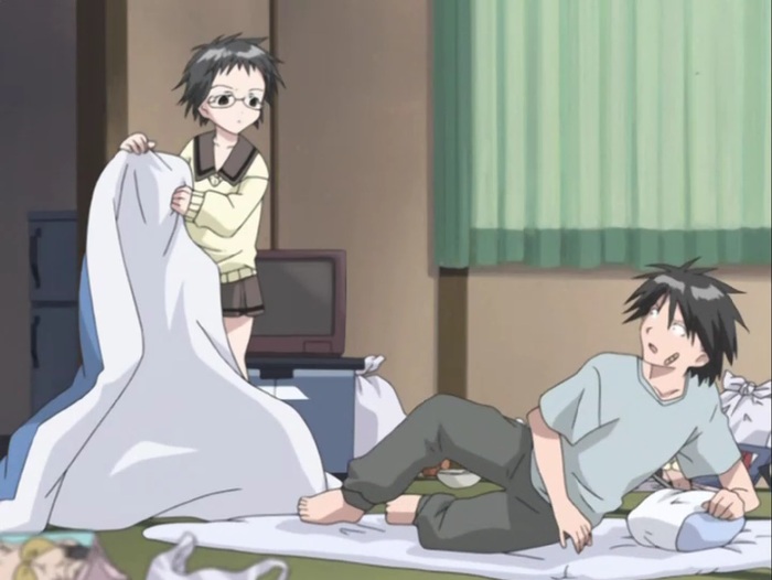 Нэнэко Идзуми - подруга детства главного героя и дочь хозяев его квартиры, можно назвать ее третьим главным героем. Выглядит тихоней, но на деле просто спокойная и уравновешенная, также периодически может настучать по голове Такэя за его мудацкие поступки. Талантливая швея и дизайнер. Лучшая девочка этого аниме по моему скромному мнению. Любит Такэю с детства, но не показывает ему этого и в конце манги выбрала свою мечту дизайнера вместо ГГ.