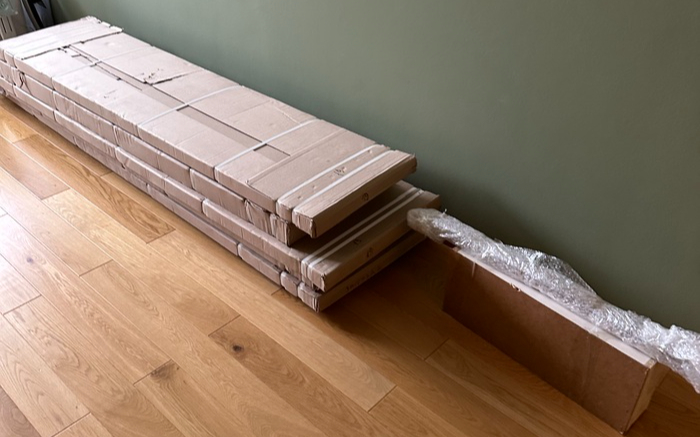 Несколько коробок и ящик с фурнитурой. Коробки побитые но не сильно, содержимое не должно пострадать, договариваюсь с товарищем на счет сборки на 1 февраля, и дело пошло. Распаковываем, в надежде найти в одной из коробок инструкцию, а ее нет. Ни в одной из коробок. Ни в ящике с фурнитурой. Смотрю в файлик с парой листиков, та отправляет на сайт производителя. Открываем сайт, а там ее тоже нет