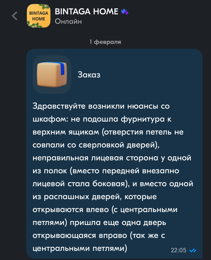 - Здравствуйте, мы увидели ваш заказ, отправляем его на производство, привезем до 5 февраля