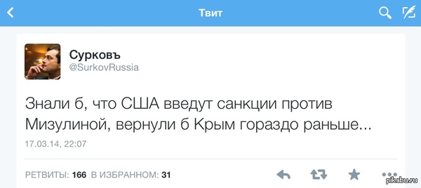 1896 JosefDredd Твит года от Суркова 11 лет назад Крым Елена Мизулина Сурков Санкции Крымская весна