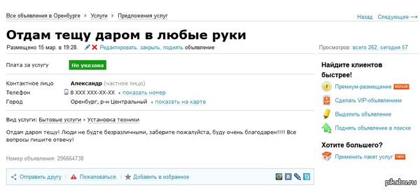 Expo1on Авито 11 лет назад Сегодня вечером наткнулся на такое объявление. Пруф: http://www.avito.ru/orenburg/predlozheniya_uslug/otdam_teschu_darom_v_lyubye_ruki_296664738 [моё] Авито Юмор Картинки Теща Боль