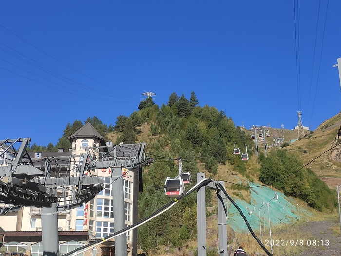 Тырныауз находится на высоте 1300метров над уровнем моря, а стартовая площадка канатной дороги, поднимающей желающих на Эльбрус – на уровне 2300метров. И в Тырныаузе и, тем более, у подножия Эльбруса из-за высоты довольно прохладно. Я ночевал две ночи на стоянке у Эльбруса и по ночам просыпался от холода, было всего 1-4 градуса.