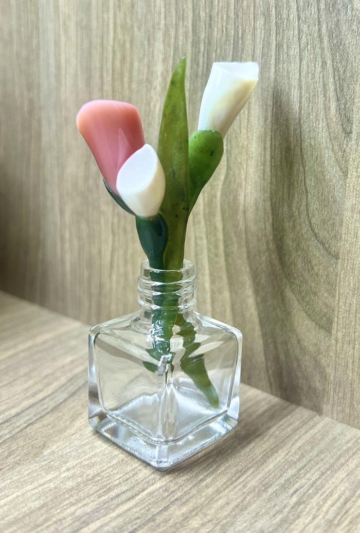 Из нефрита вырезаю стебель, из ракушки - чашечку цветка