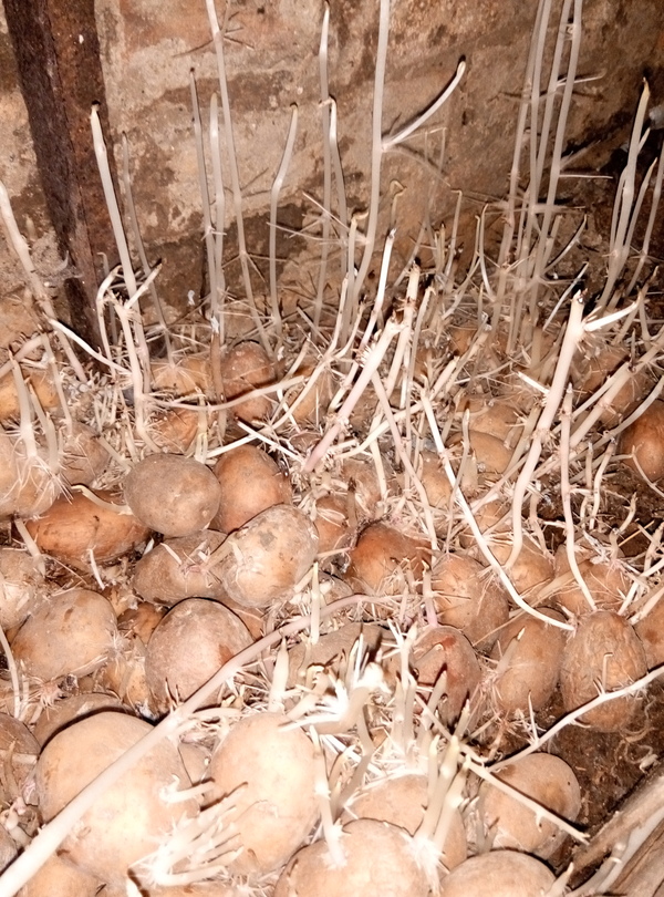 Еще и подземной прополкой пришлось заняться. Хотя сначала думал так оставить, а через пару месяцев новый урожай сразу в погребе будет:) Фоткал на тяпку