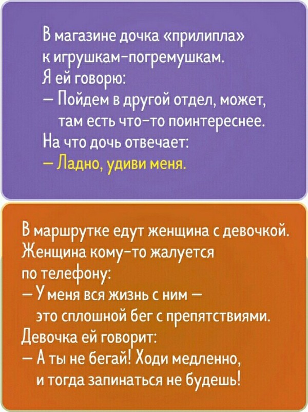 Вчера. Малую (год ей) под мышку, в машину и кататься. Заскочили в магазин, набрал там всякой полезной и не очень ерунды, двинулись на кассу. Там человек восемь. Из очереди сразу в несколько голосов: Проходите, нечего с ребенком стоять. Но Яжепапа, мля)), спасибо, но постою).. Правда, кассира попросил на вторую кассу позвать кого-нибудь. Нормально, пришла девочка, отпустила купленное. Подбегает мужик, начинает продукты помогать складывать, несмотря на мои отказы)). Спасибо ему, конечно. С языка за малым не сорвалось, чтобы женщинам так с детьми помогали и без очереди пропускали. Удержался, чтобы не обидеть. Эх.. к чему это я? А х.. знает. Добрее будьте. И не чешите всех мам под гребенку Яжматерей.