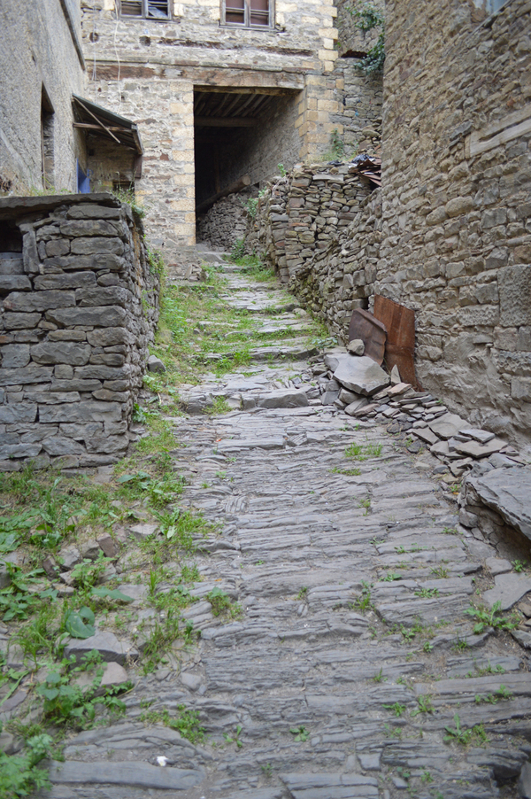 Тропинка расширяется, мы подходим к селу. На камнях растет местный лишайник, поэтому стены красные. Дом в центре - последний обитаемый.