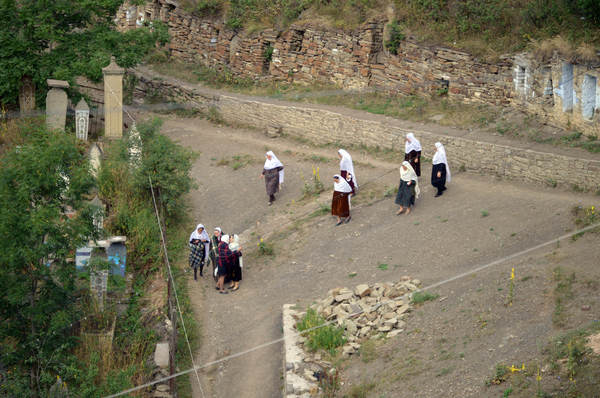 Традиции тут очень сильны, почти как в Британии)) В селе все женщины носят белый платок, по вышивке на котором определяется ее статус. За пределами села платков не надевают.